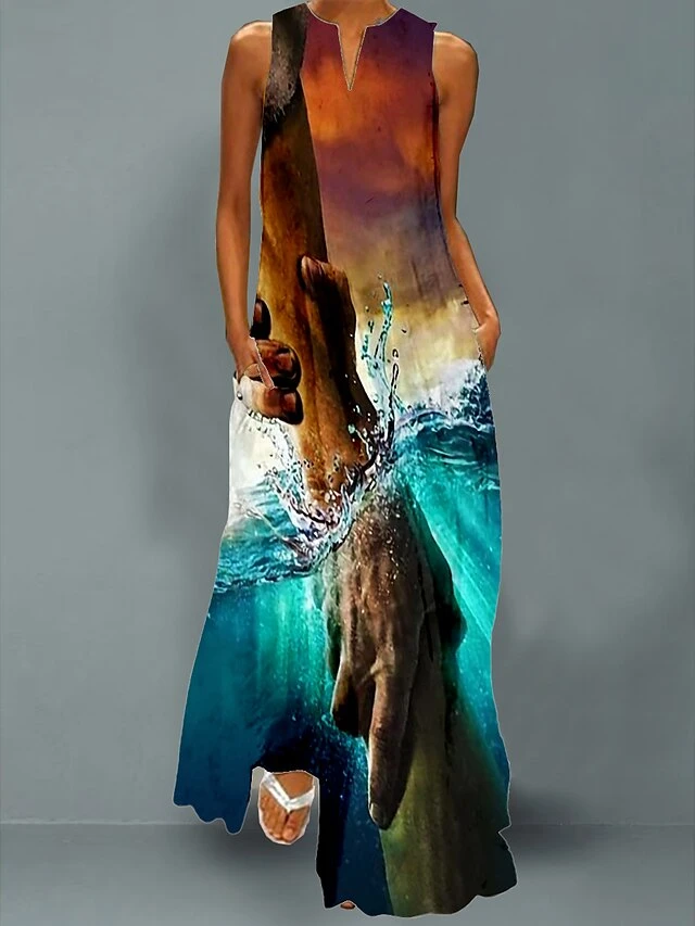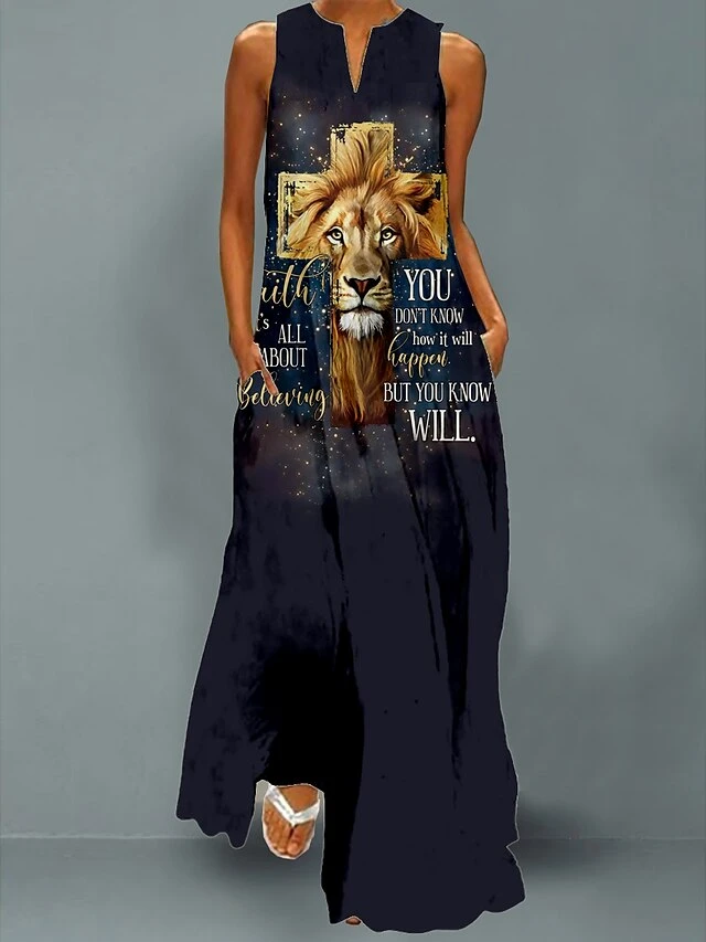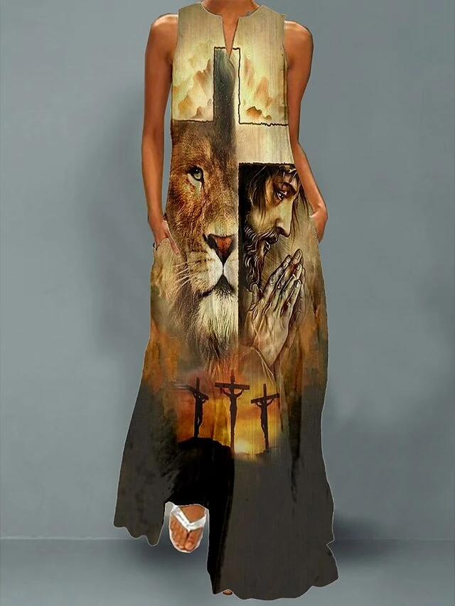 Women’s Easter Cross Long Dress Maxi Dress Casual Dress Swing Dress Print Dress Casual Holiday Vacation Beach Pocket Print Sleeveless V Neck Dress Loose Fit Black Yellow Blue Spring
