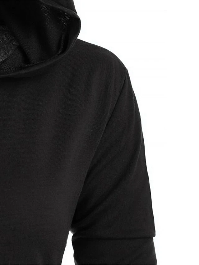 Women‘s Halloween Dress Casual Dress Hoodie Dress Midi Dress Gothic Basic Outdoor Vacation V Neck Pure Color Solid Color Regular Fit Black Red S M L XL XXL