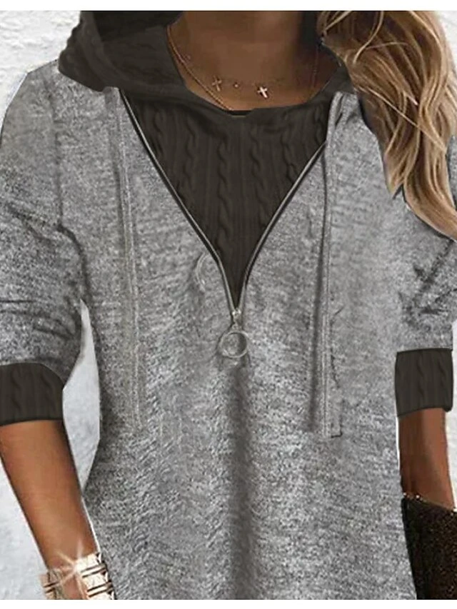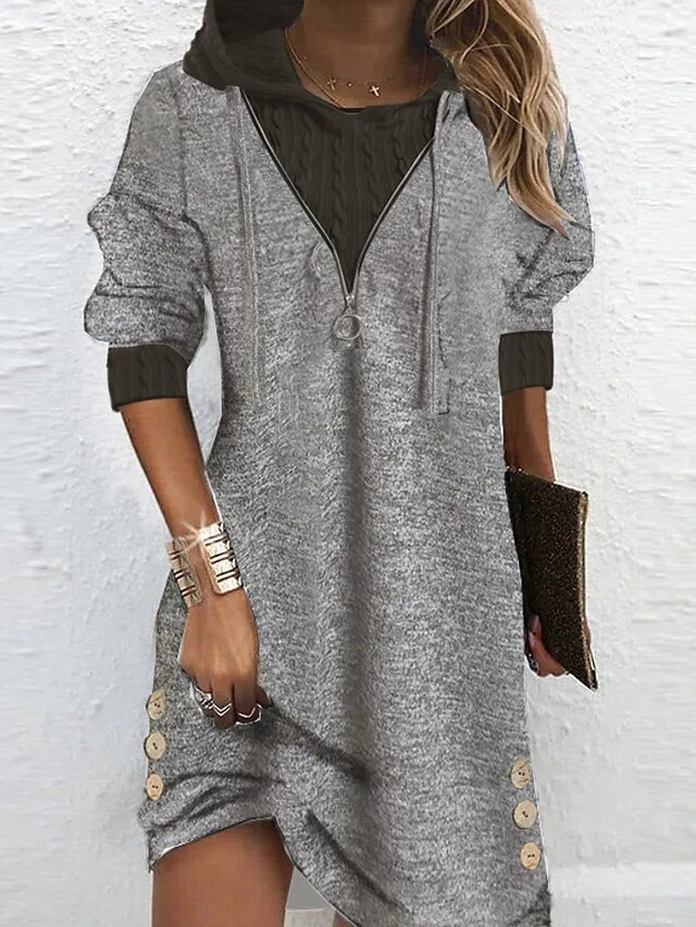 Women‘s Hoodie Dress Winter Dress Mini Dress Dark Gray 3/4 Length Sleeve Pure Color Ruched Button Winter Fall Hooded Stylish Casual 2022 S M L XL XXL 3XL