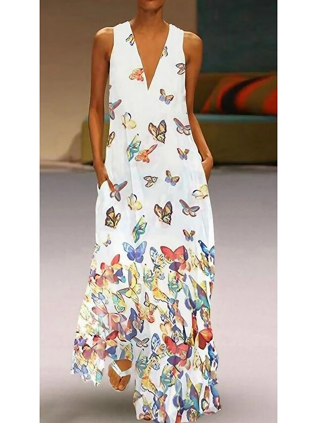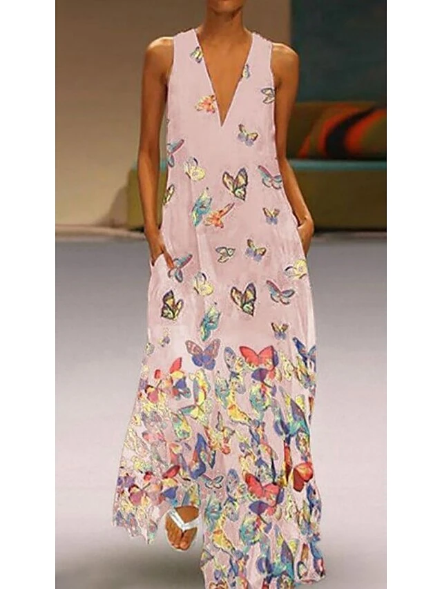 Women’s Long Dress Maxi Dress Pink Light Blue White Sleeveless Animal Print Spring Summer Deep V Hot S M L XL XXL 3XL 4XL 5XL