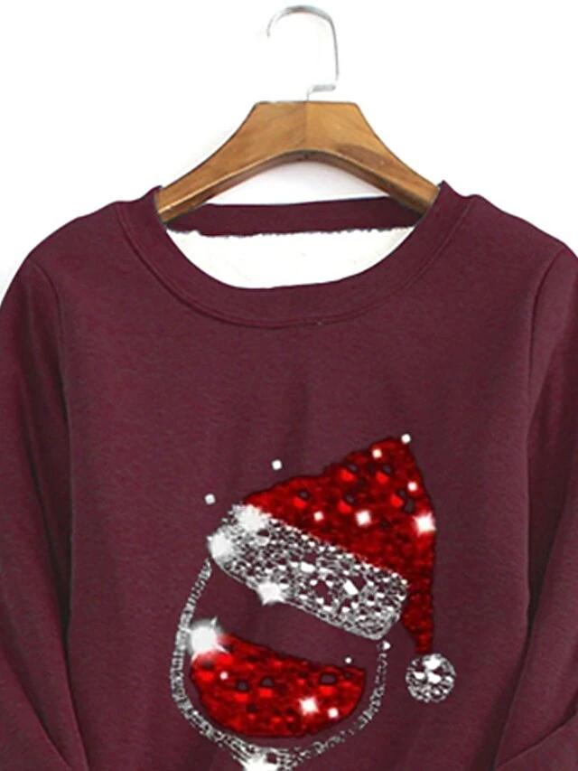 Women‘s Plus Size Christmas Casual Dress Print Crew Neck Long Sleeve Winter Fall Casual Mini Dress Daily Dress / Hoodie Dress