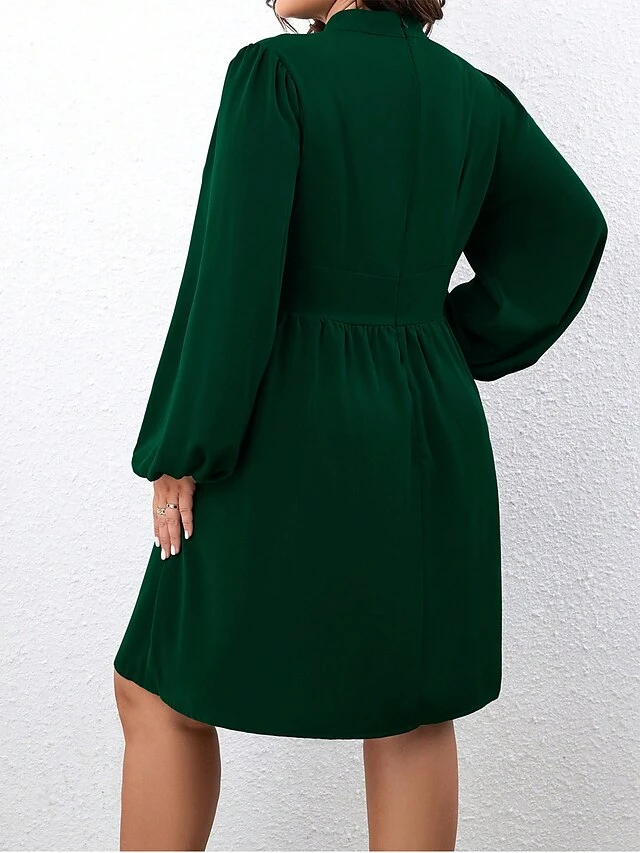 Women’s Plus Size Curve Casual Dress A Line Dress Knit Dress Solid Color Midi Dress Long Sleeve Ruched Cut Out Stand Collar Fashion Outdoor Green Fall Winter XL XXL 3XL