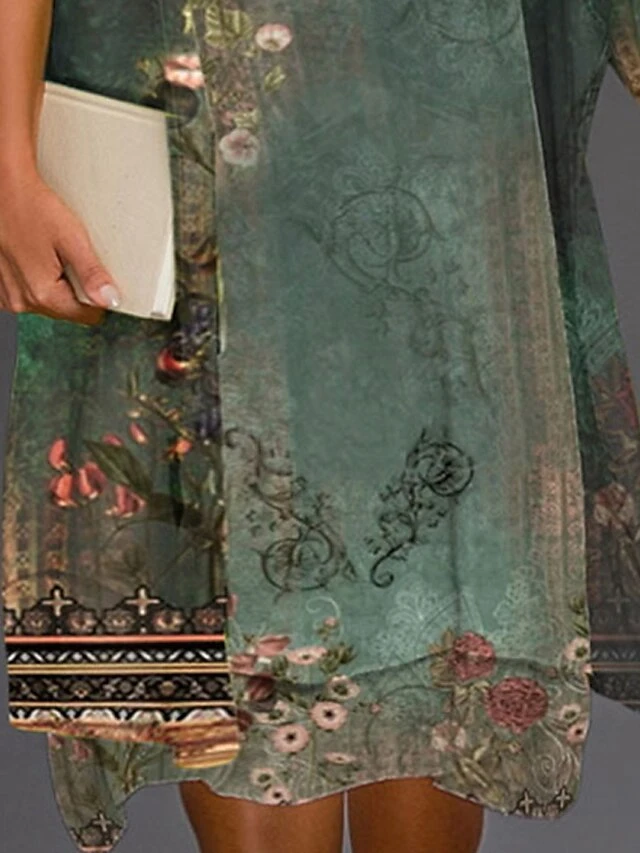 Women‘s Plus Size Curve Casual Dress Dress Set Two Piece Dress Floral Midi Dress 3/4 Length Sleeve Print Crew Neck Fashion Daily Green Summer Spring L XL XXL 3XL