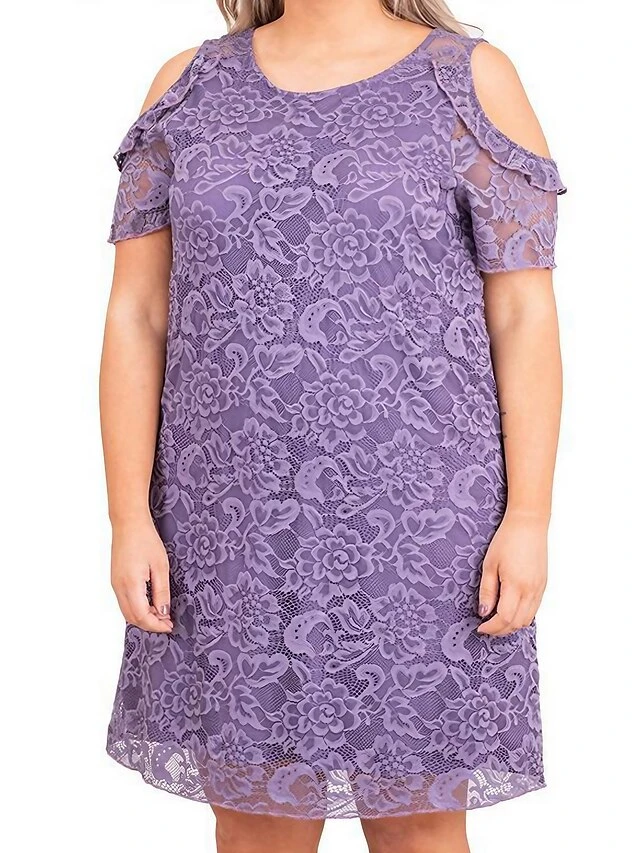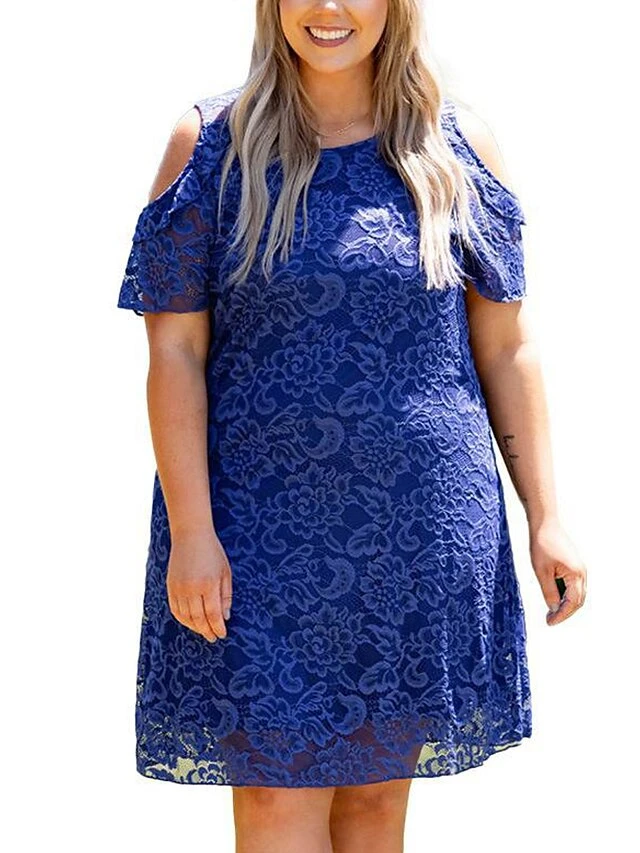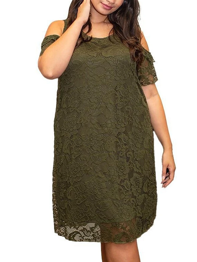 Women’s Plus Size Curve Casual Dress Lace Dress A Line Dress Plain Mini Dress Short Sleeve Lace Patchwork V Neck Fashion Outdoor ArmyGreen Blue Fall Winter XL XXL 3XL 4XL