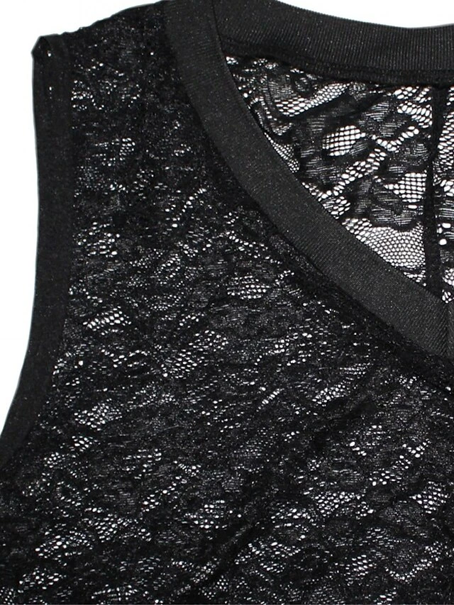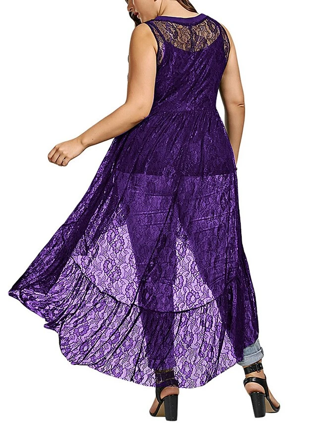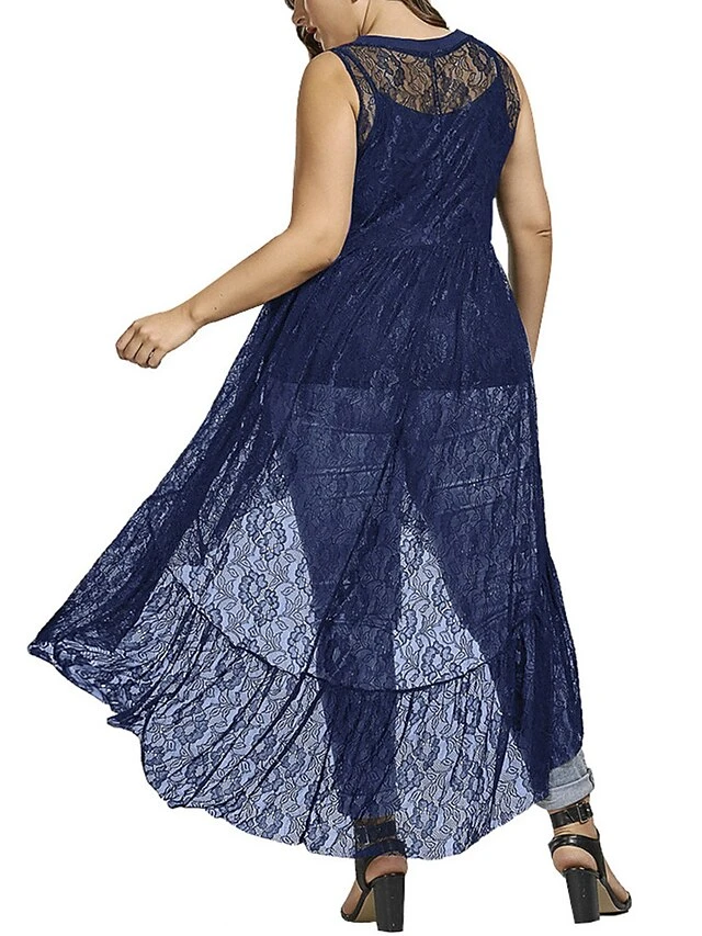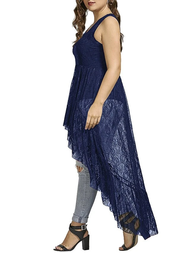 Women‘s Plus Size Curve Casual Dress Lace Dress A Line Dress Solid Color Mini Dress Sleeveless Lace Plus High Low V Neck Fashion Outdoor Black White Summer Spring XL XXL 3XL 4XL 5XL