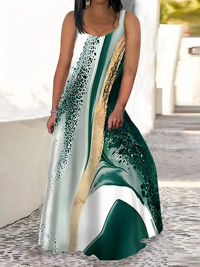 Women‘s Plus Size Curve Casual Dress Swing Dress Tank Dress Color Block Butterfly Long Dress Maxi Dress Sleeveless Print V Neck Modern Daily Blue Sky Blue Summer Spring L XL XXL 3XL 4XL