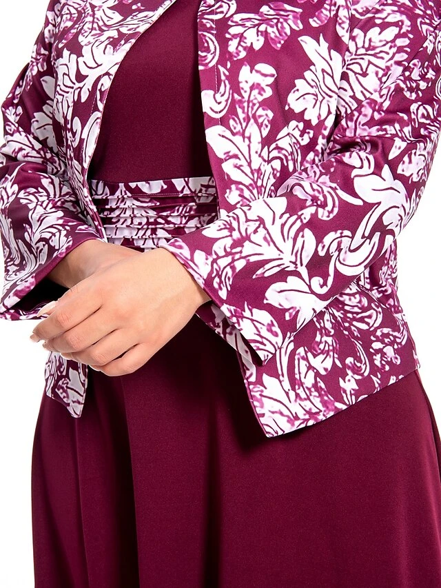 Women‘s Plus Size Curve Dress Set Print Crew Neck Long Sleeve Spring Fall Elegant Maxi Long Dress Formal Party Dress