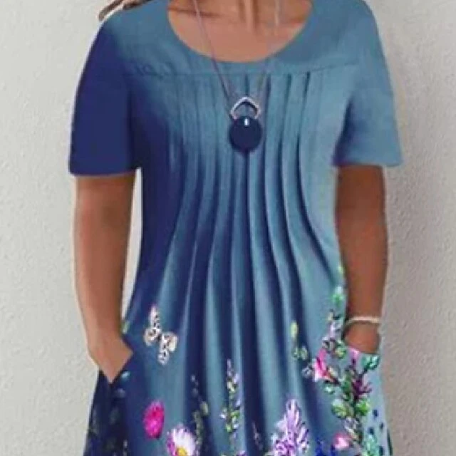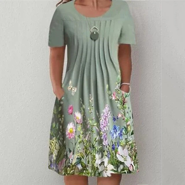 Women‘s Plus Size Curve Easter Dress Floral Crew Neck Vacation Dress Short Sleeve Fall Spring Dress Casual Knee Length Dress Casual Daily Dress