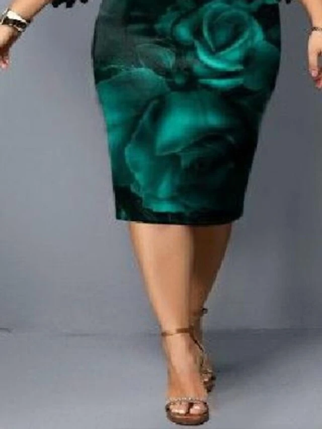 Women‘s Plus Size Curve Flattering Dresses Elegant Apple Shaped Dress Wedding Guest Party Dress Print Crew Neck Sleeve Spring Fall Work Casual Prom Dress Midi Dress Daily Work Dress