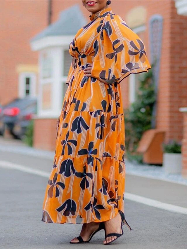 Women‘s Plus Size Curve Holiday Dress Floral Turtleneck Print 3/4 Length Sleeve Fall Spring Vintage Maxi Long Dress Date Vacation Dress