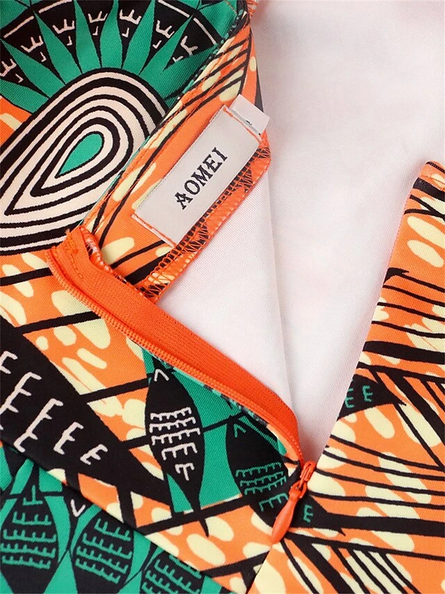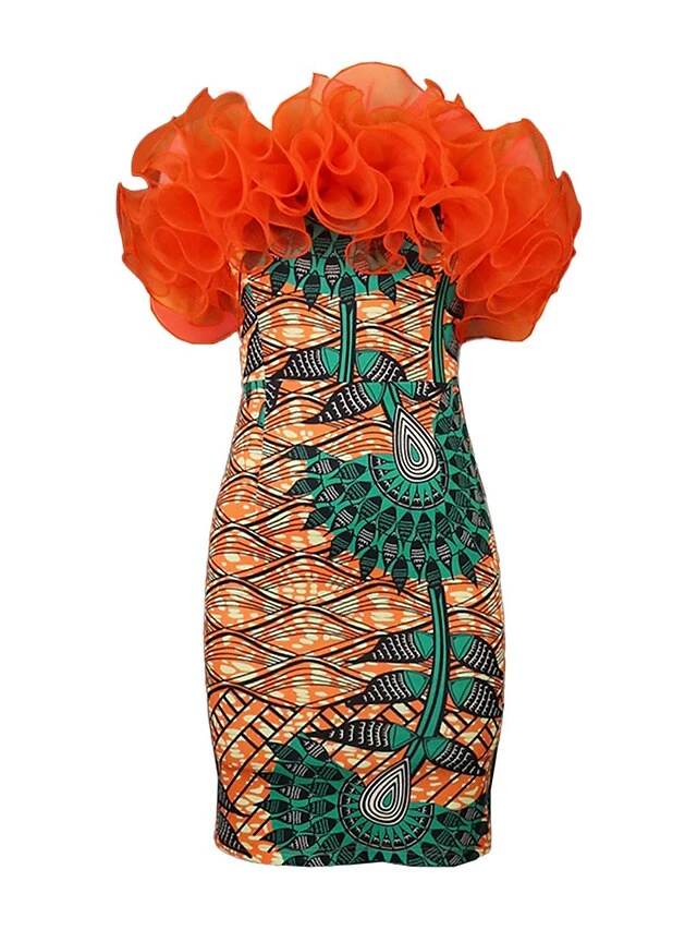 Women’s Plus Size Curve Party Dress Bodycon Sheath Dress Floral Geometric Midi Dress Sleeveless Mesh Backless Strapless Fashion Party Orange Fall Winter XL XXL 3XL 4XL