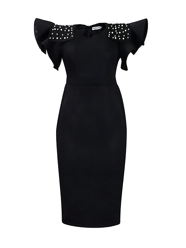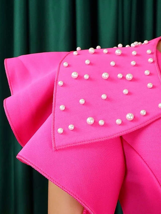 Women‘s Plus Size Curve Party Dress Cocktail Dress Bodycon Solid Color Midi Dress Short Sleeve Ruffle Split Crew Neck Fashion Party Black Wine Summer Spring L XL XXL 3XL