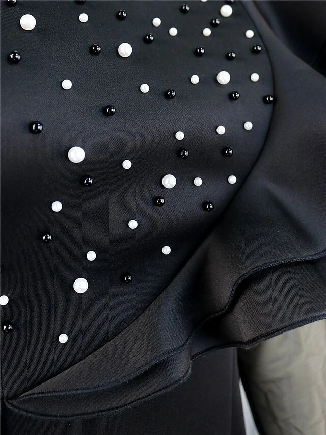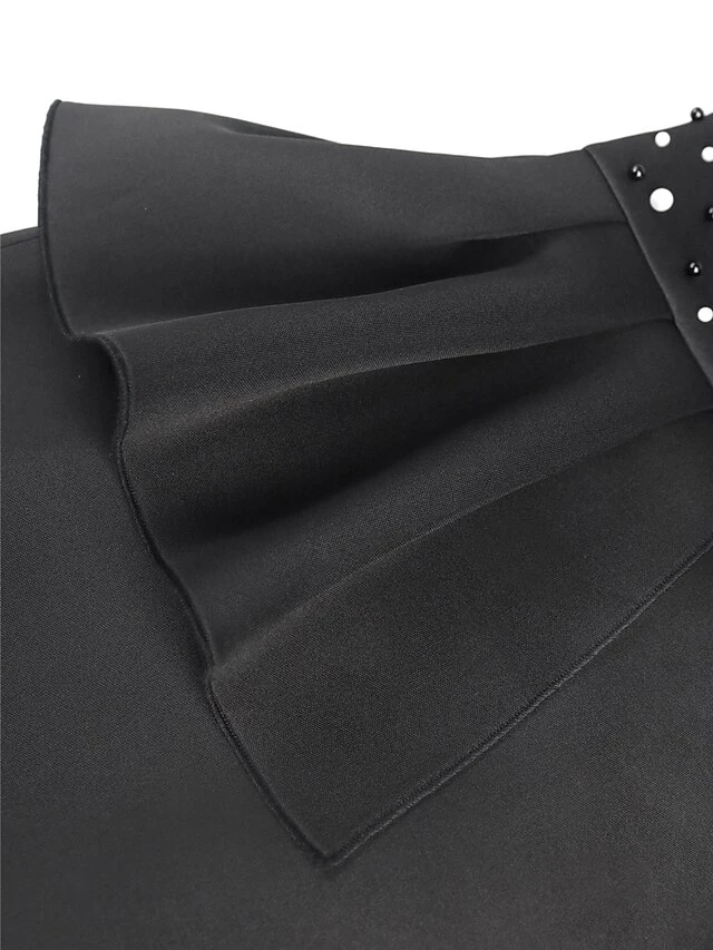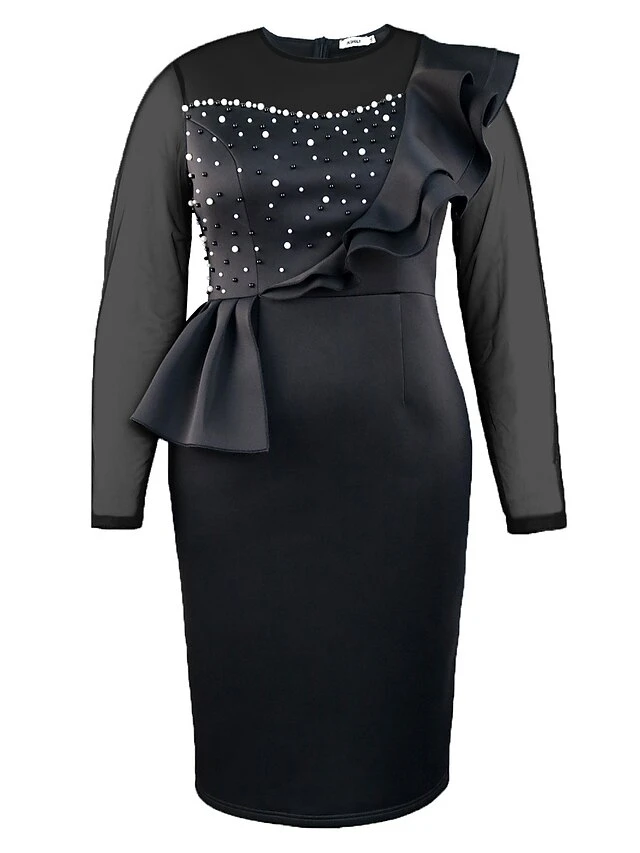 Women‘s Plus Size Curve Party Dress Cocktail Dress Wedding Guest Dress Midi Dress Black Long Sleeve Pure Color Ruffle Spring Fall Winter Crew Neck Fashion Wedding Guest Vacation Summer Dress 2023