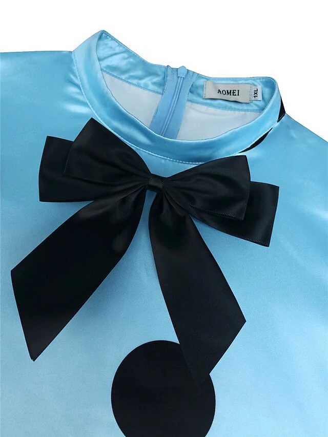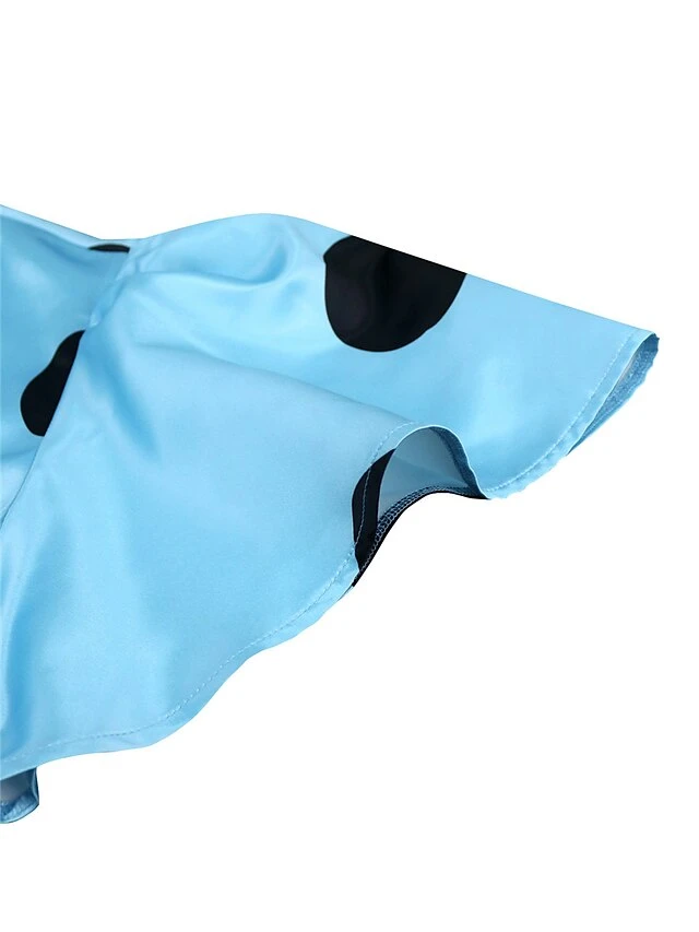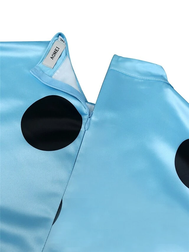 Women‘s Plus Size Curve Party Dress Cocktail Dress Wedding Guest Dress Midi Dress Blue Short Sleeve Polka Dot Patchwork Summer Spring Fall Stand Collar Fashion Wedding Guest Vacation 2023