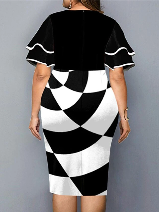 Women‘s Plus Size Curve Party Dress Floral Crew Neck Ruffle Short Sleeve Spring Fall Work Casual Prom Dress Midi Dress Casual Daily DressPrint