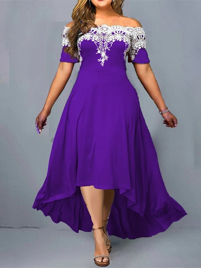 Women‘s Plus Size Curve Party Dress Floral Off Shoulder Short Sleeve Spring Fall Elegant Formal Maxi Long Dress Party Evening Party Dress