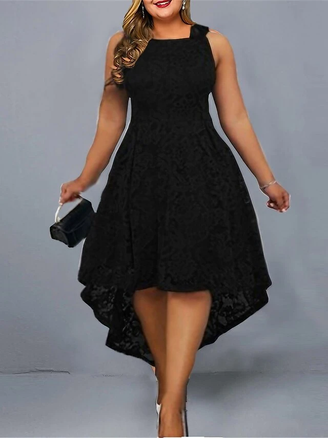 Women‘s Plus Size Curve Party Dress Lace Dress Cocktail Dress Solid Color Long Dress Maxi Dress Sleeveless Lace Plus High Low Crew Neck Modern Party Black Wine Spring Summer L XL XXL 3XL 4XL
