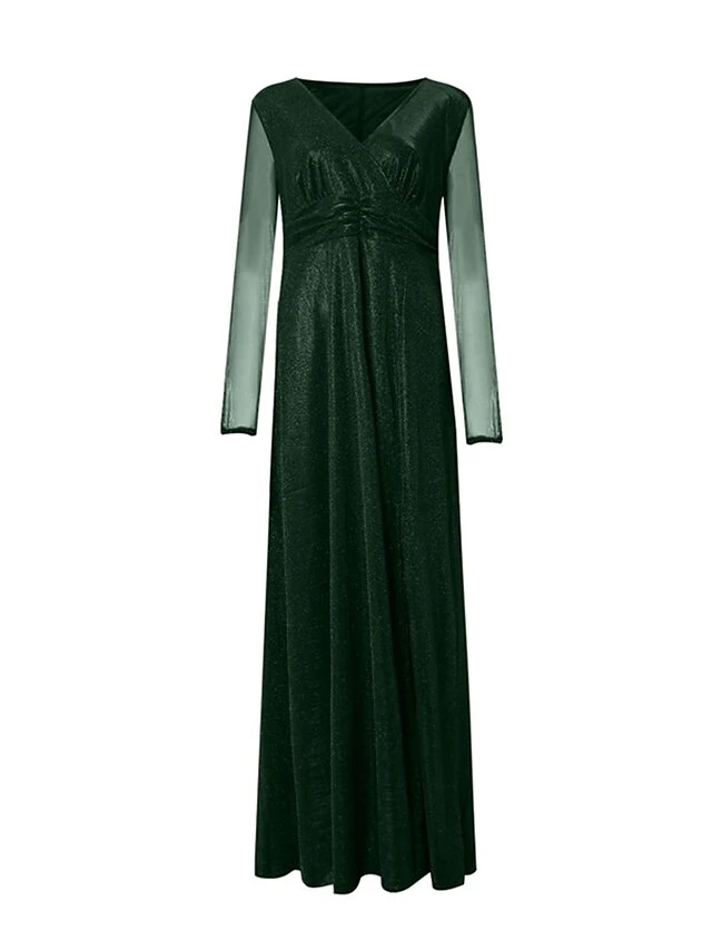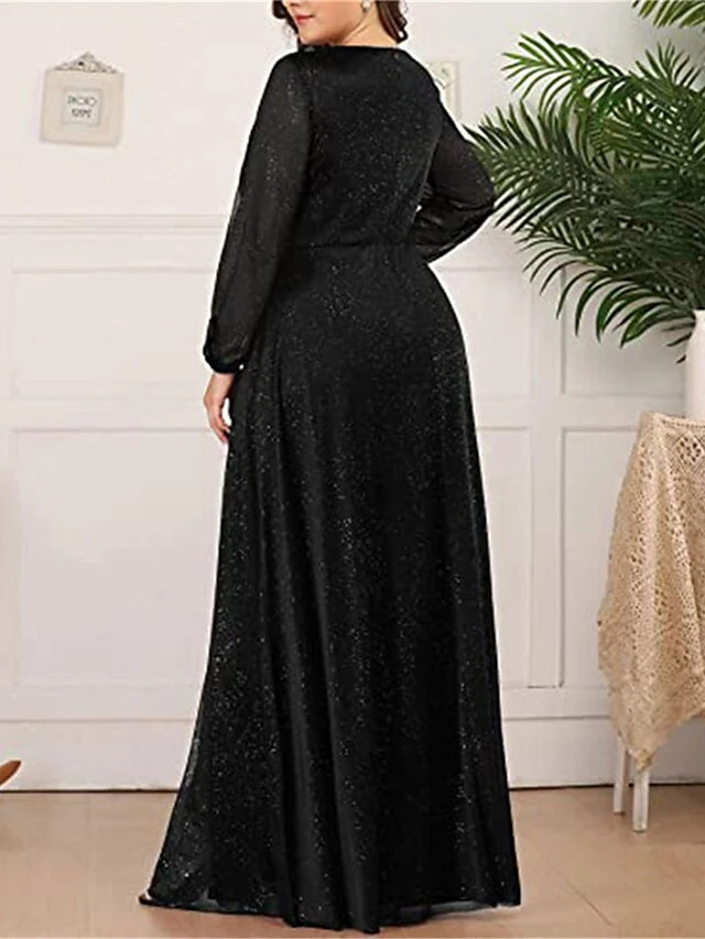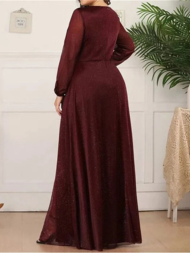 Women’s Plus Size Curve Party Dress Sheath Dress Burgundy Dress Solid Color Plain Long Dress Maxi Dress Long Sleeve V Neck Fashion Party Black Wine Fall Winter L XL XXL 3XL 4XL