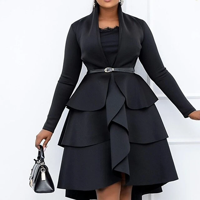 Women‘s Plus Size Curve Party Dress Solid Color Square Neck Ruffle Long Sleeve Winter Fall Basic Casual Prom Dress Midi Dress Work Daily Dress Black Dress Homecoming Dress
