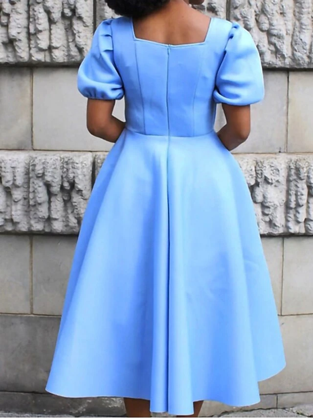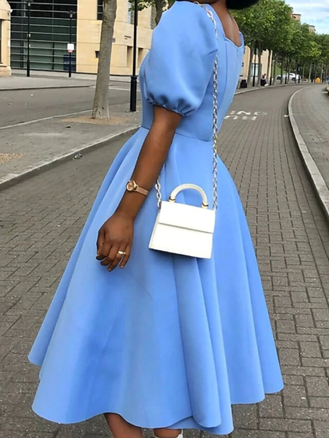 Women‘s Plus Size Curve Party Dress Solid Color Square Neck Short Sleeve Spring Fall Formal Prom Dress Midi Dress Party Going Out Dress