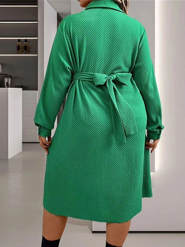 Women’s Plus Size Curve Shirt Dress Casual Dress Plain Midi Dress Long Sleeve Ruched Button Shirt Collar Fashion Outdoor Green Fall Winter L XL XXL 3XL 4XL