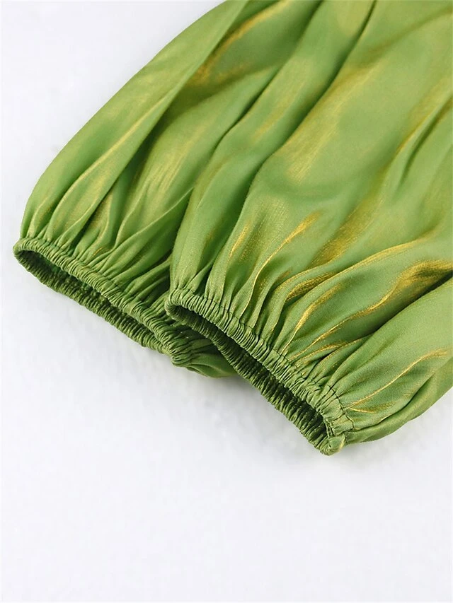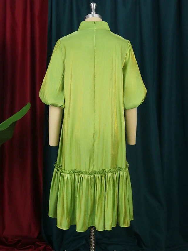 Women’s Plus Size Curve Shirt Dress Casual Dress Satin Dress Plain Midi Dress Half Sleeve Ruched Ruffle V Neck Fashion Daily Green Fall Winter XL XXL 3XL 4XL