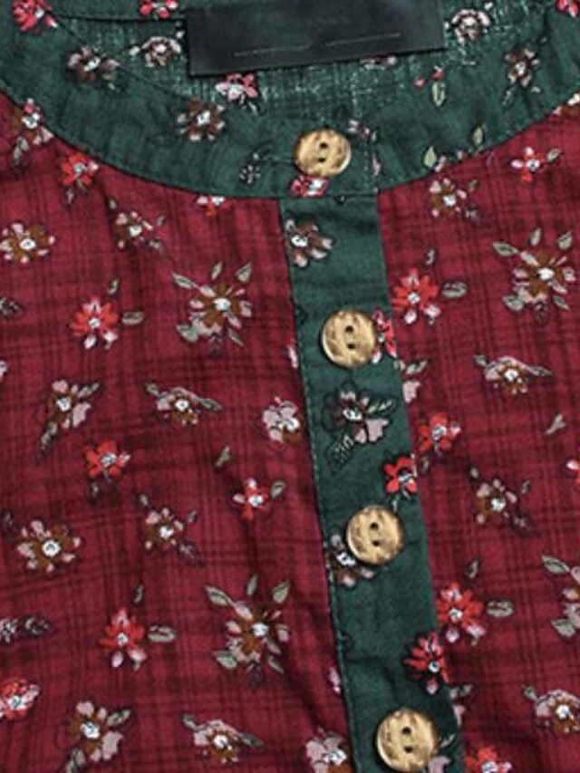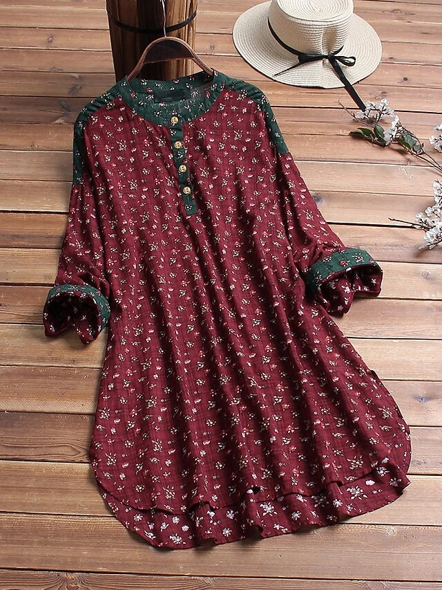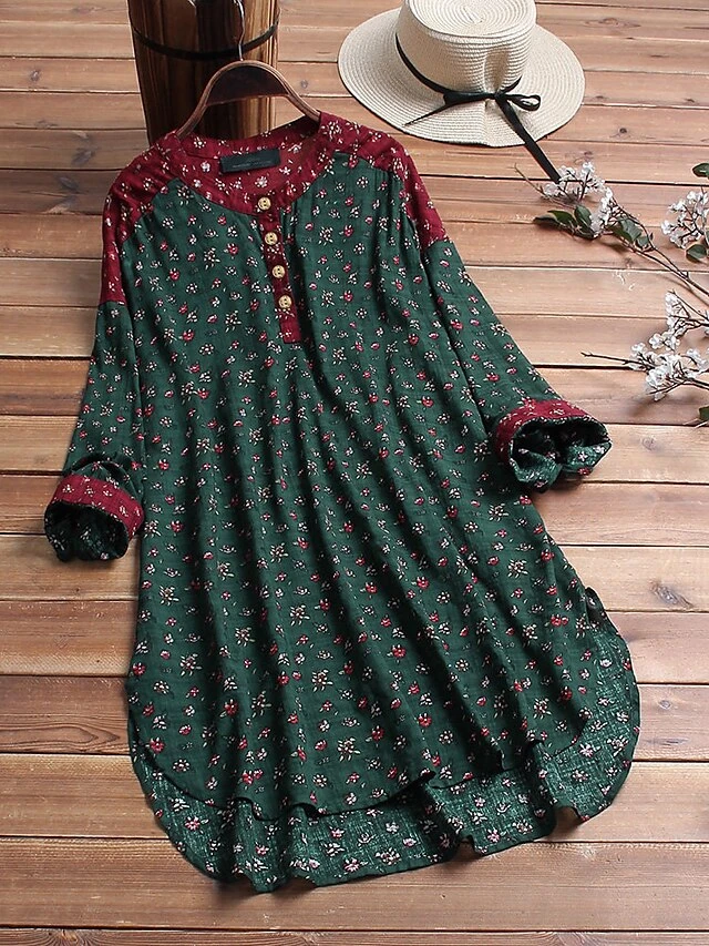 Women‘s Plus Size Curve Shirt Dress Floral Crew Neck Long Sleeve Fall Spring Short Mini Dress Holiday Dress