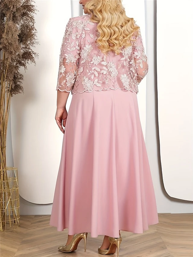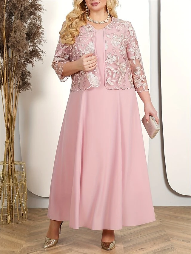 Women’s Plus Size Curve Two Piece Dress Set Party Dress Lace Dress Party Wedding Guest Fashion Elegant Lace Embroidered Long Dress Maxi Dress Crew Neck 3/4 Length Sleeve Plain Pink Blue Spring