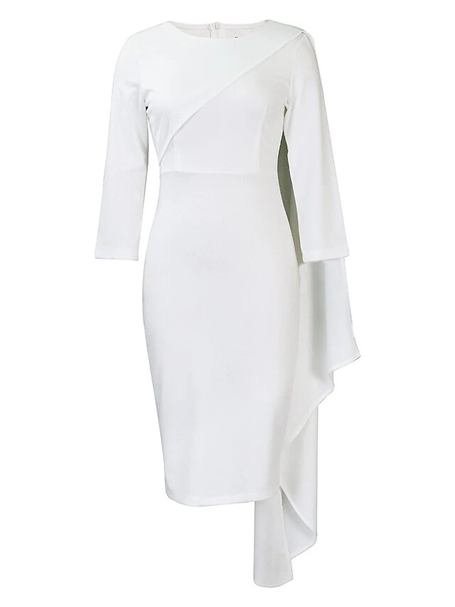 Women‘s Plus Size Curve Work Dress Bodycon Sheath Dress Solid Color Midi Dress Long Sleeve Crew Neck Fashion Outdoor White Red Fall Spring L XL XXL 3XL