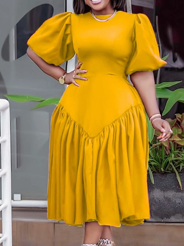 Women‘s Plus Size Curve Work Dress Solid Color V Neck Half Sleeve Spring Fall Stylish Work Formal Knee Length Dress Formal Going Out Dress