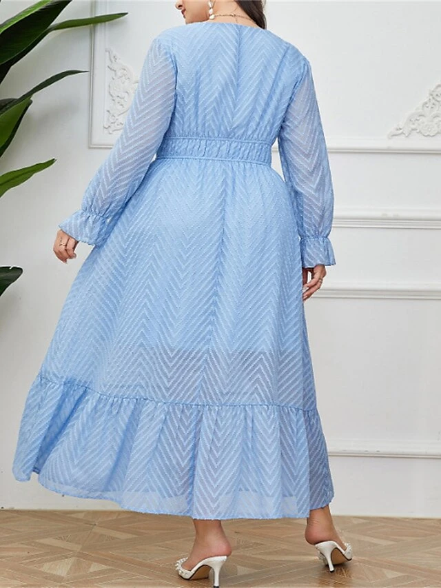 Women’s Plus Size Prom Dress Party Dress Corset Dress Long Dress Maxi Dress Light Blue Long Sleeve Pure Color Drawstring Fall Winter Autumn Square Neck Fashion Winter Dress Evening Party Wedding Guest
