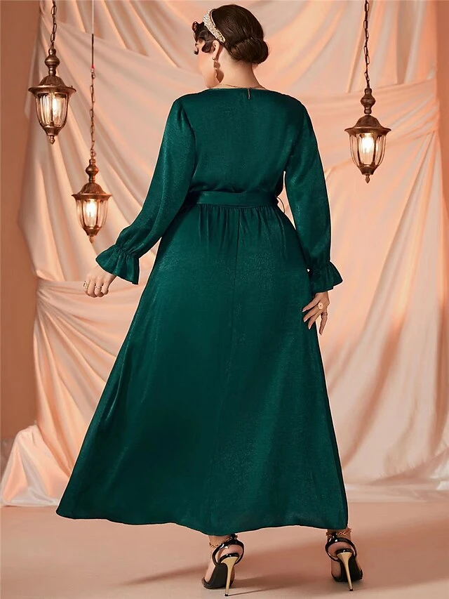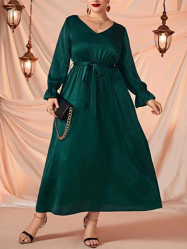 Women’s Plus Size Work Dress Swing Dress Semi Formal Dress Fashion Long Dress Maxi Dress Lace Up V Neck Long Sleeve Plain Regular Fit Green Fall Winter L XL XXL 3XL 4XL
