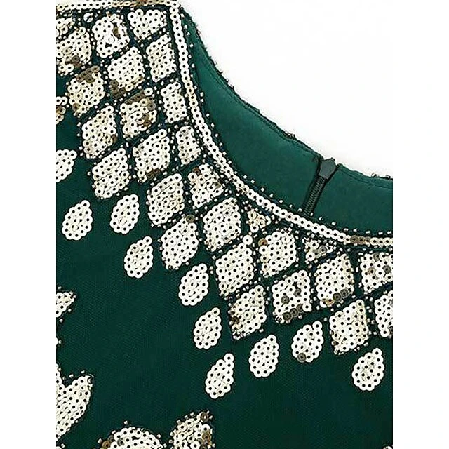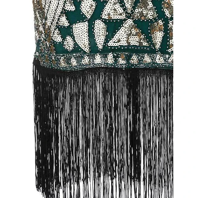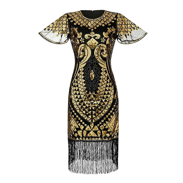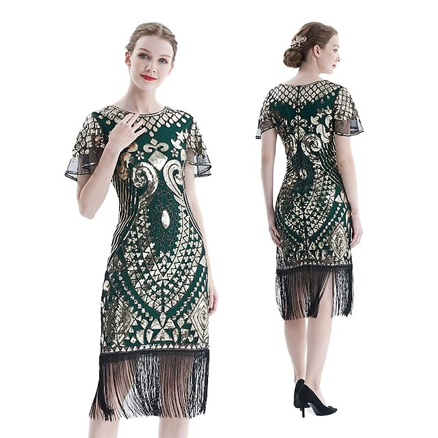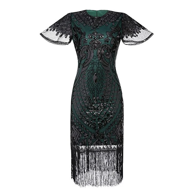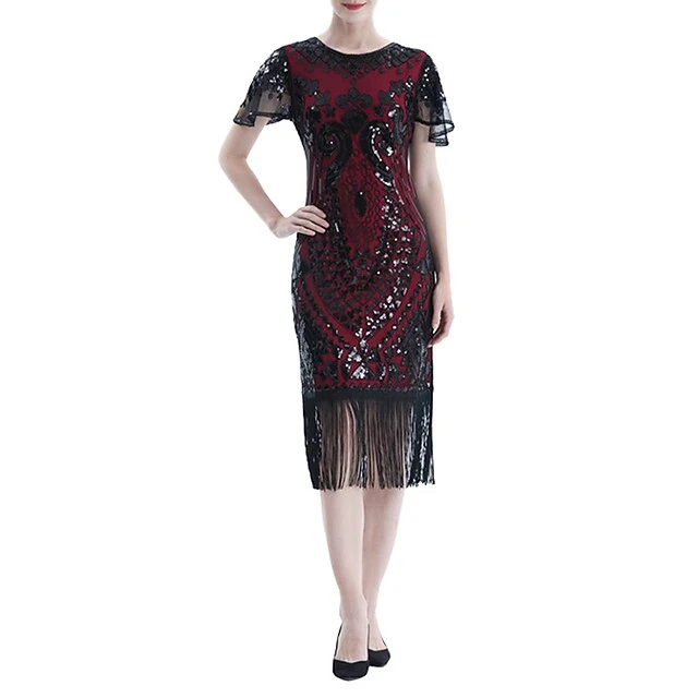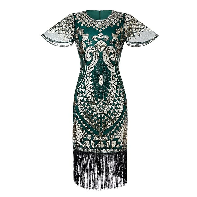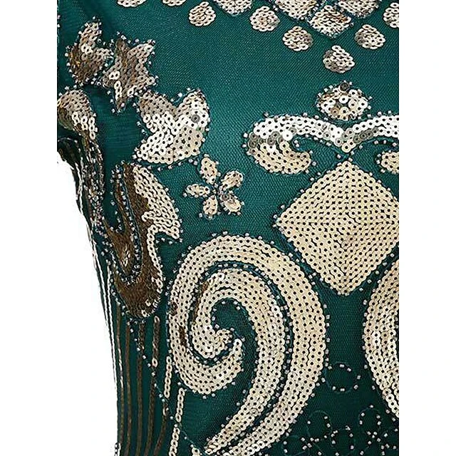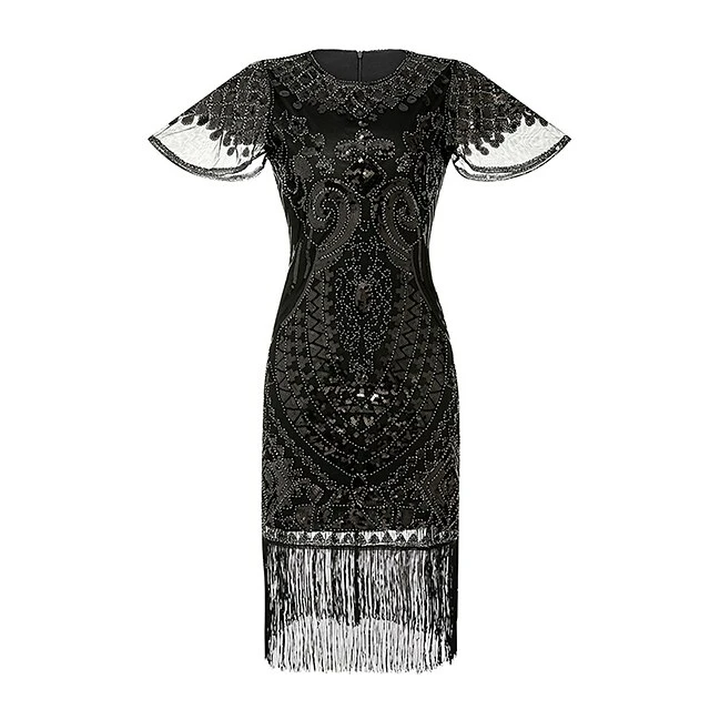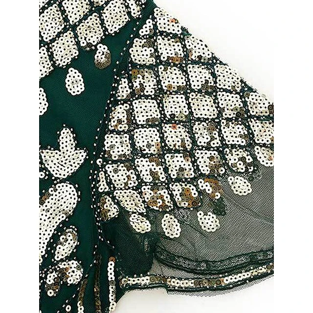 Women’s Retro 1920s Fringe Dress Midi Dress Party Halloween Sequins Tassel Fringe Floral V Neck Short Sleeve Regular Fit Spring Fall 2023 Silver Black S M L XL