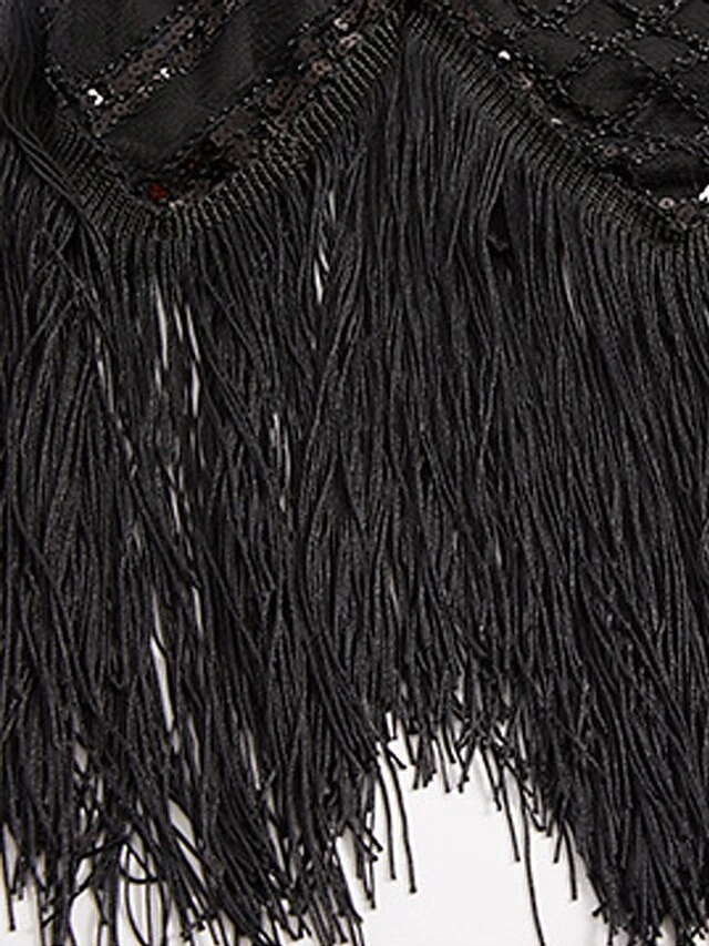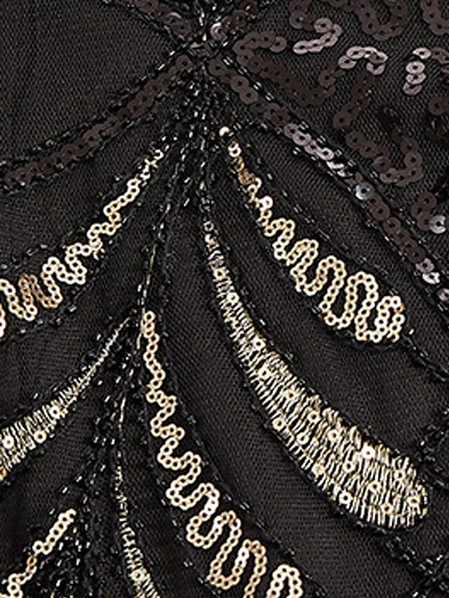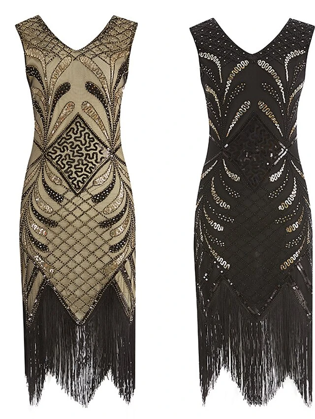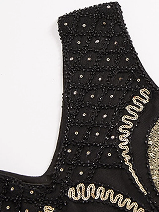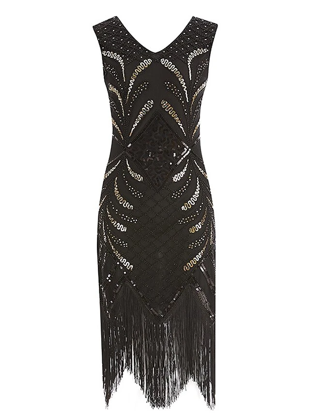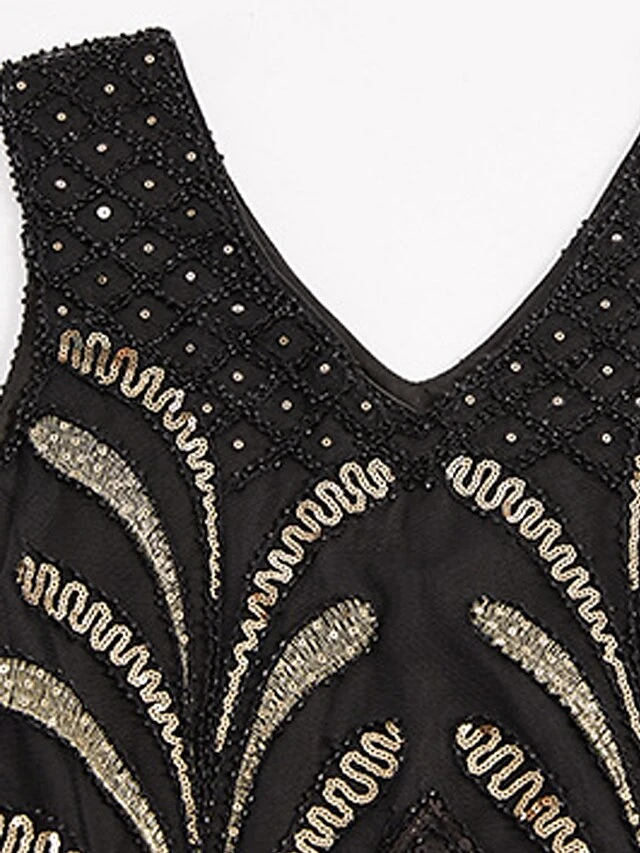 Women’s Retro 1920s Fringe Dress Midi Dress Party Halloween Sequins Tassel Fringe Floral V Neck Sleeveless Regular Fit Spring Fall 2023 Black Gold S M L XL