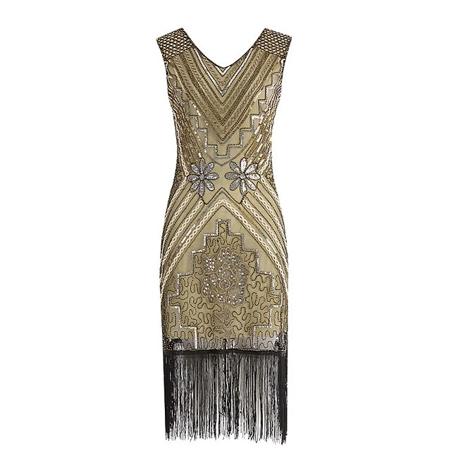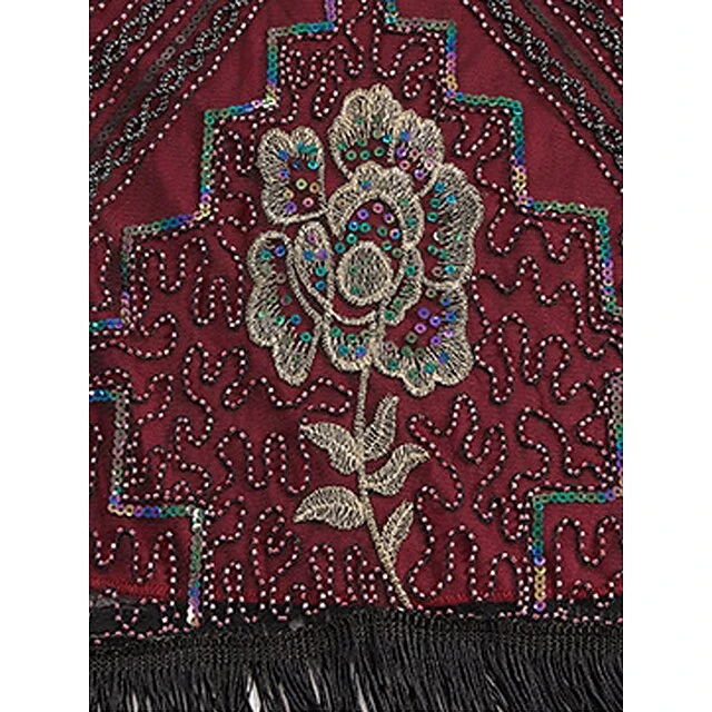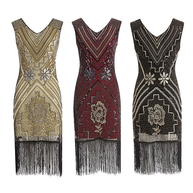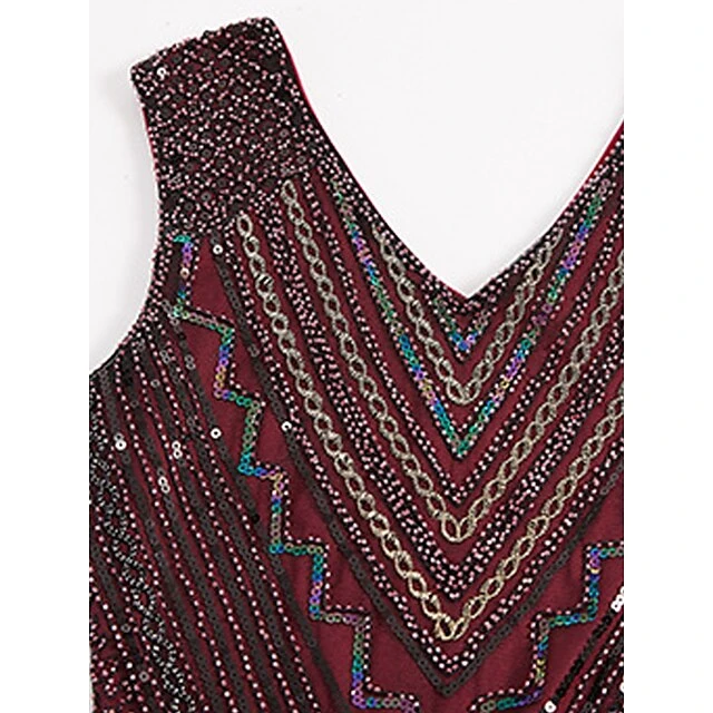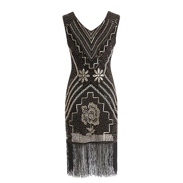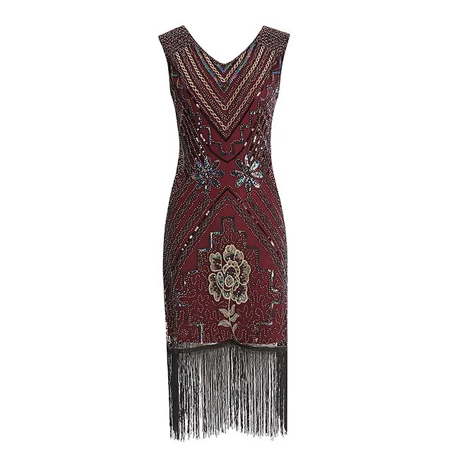 Women’s Retro 1920s Fringe Dress Midi Dress Party Halloween Sequins Tassel Fringe Floral V Neck Sleeveless Regular Fit Spring Fall 2023 Black Red S M L XL