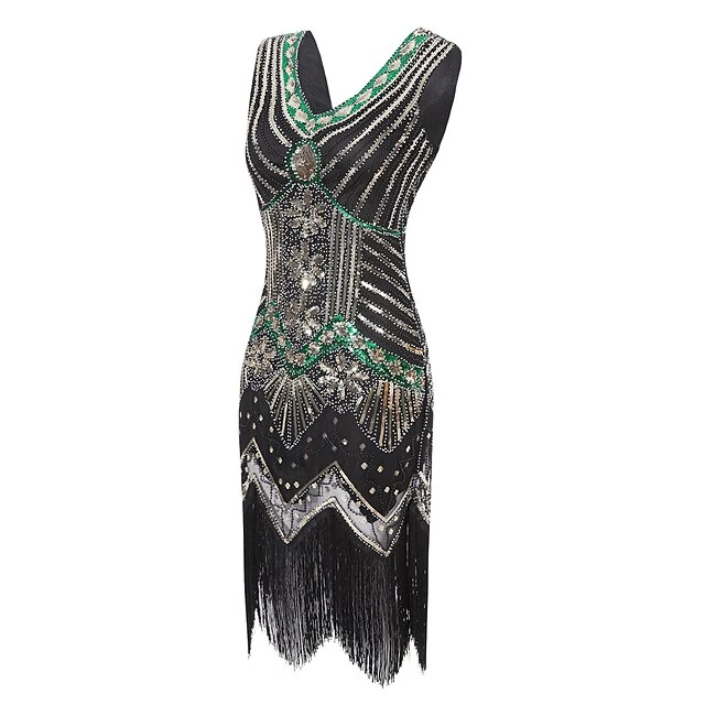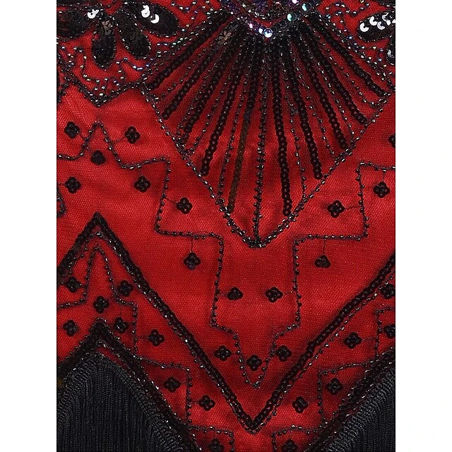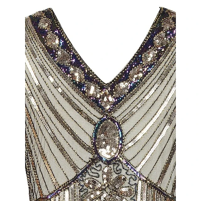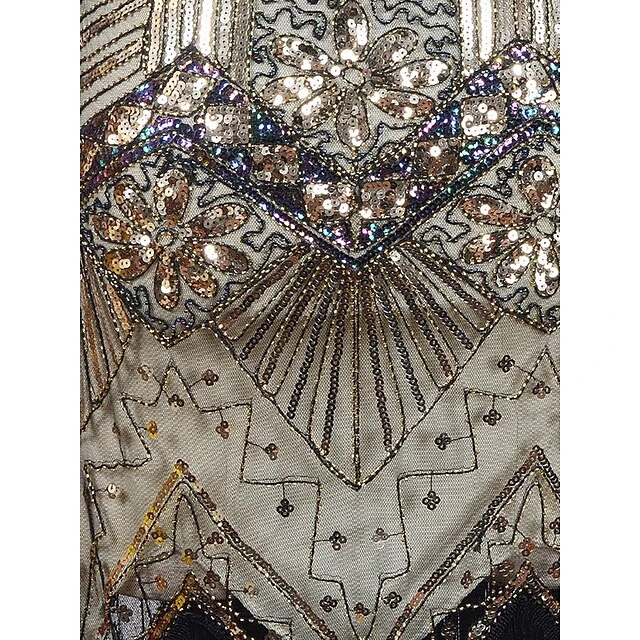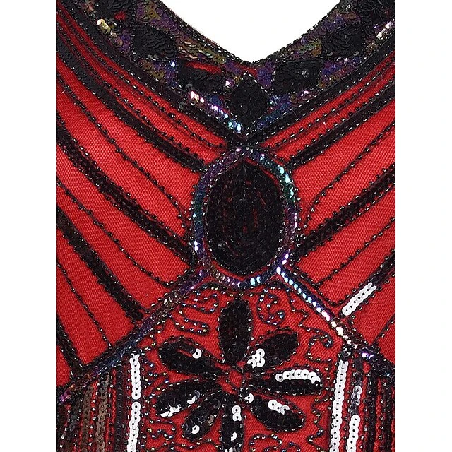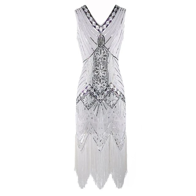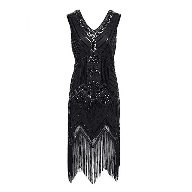 Women’s Retro 1920s Fringe Dress Midi Dress Party Halloween Sequins Tassel Fringe Floral V Neck Sleeveless Regular Fit Spring Fall 2023 Black White S M L XL