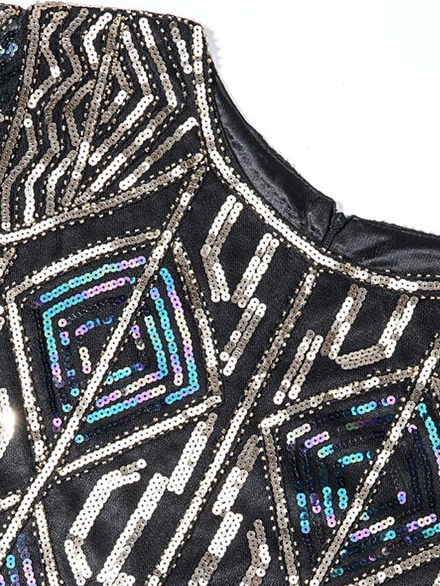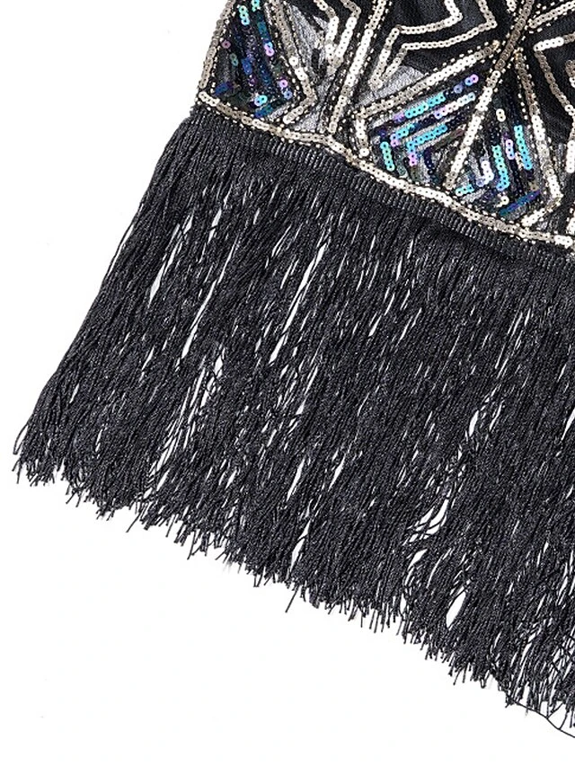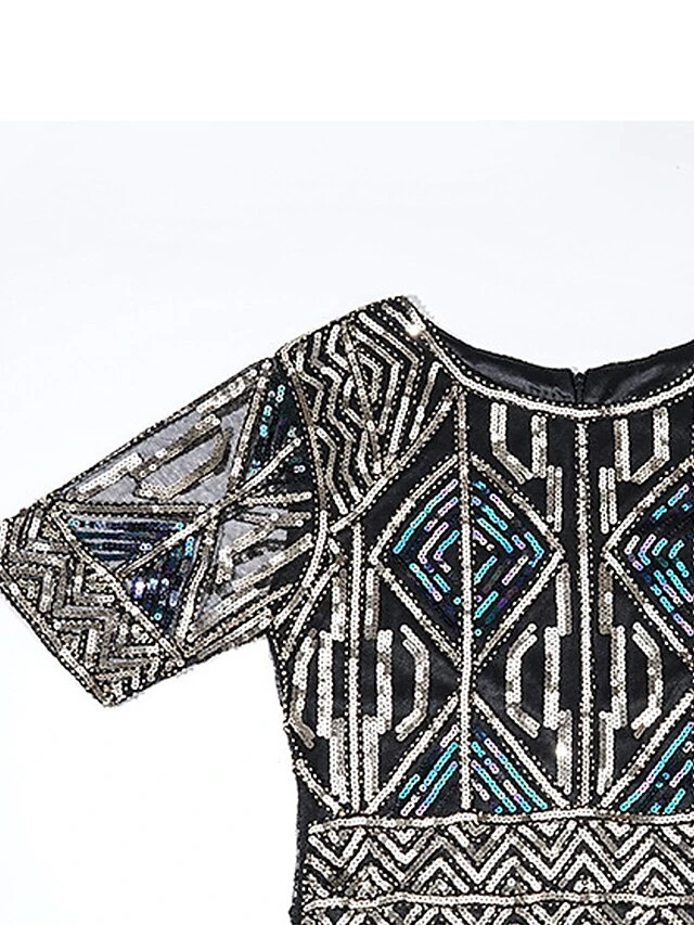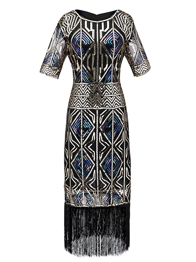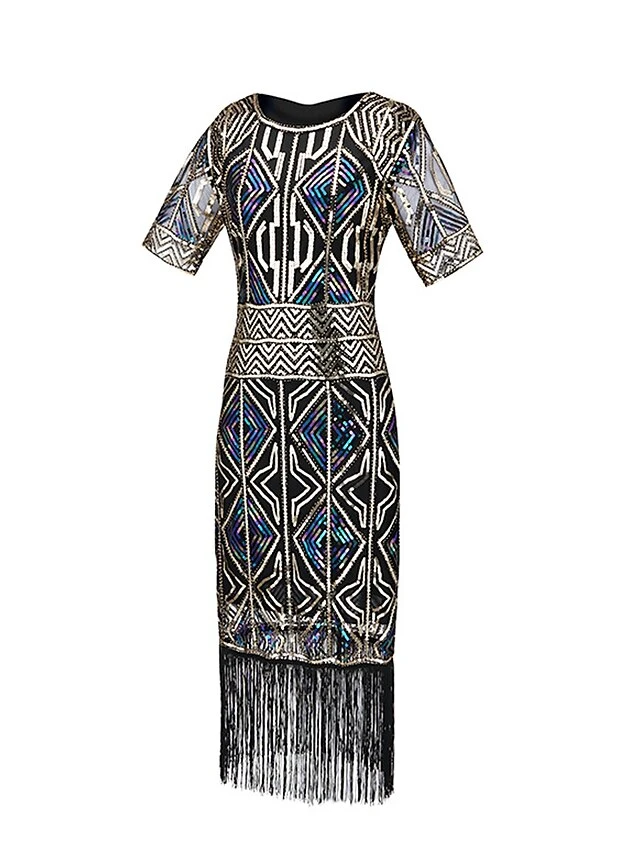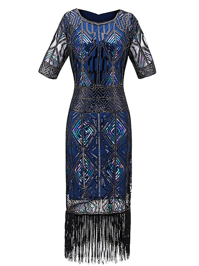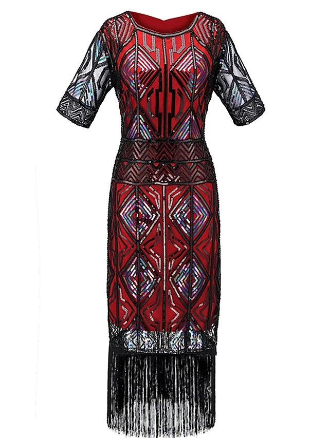 Women’s Retro 1920s Fringe Dress Midi Dress Party Halloween Sequins Tassel Fringe Geometric Crewneck Short Sleeve Regular Fit Spring Fall 2023 Red Blue S M L XL