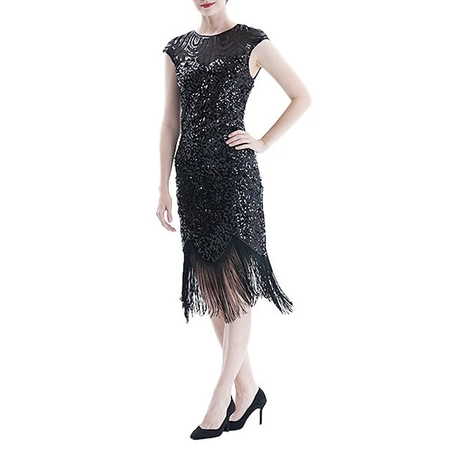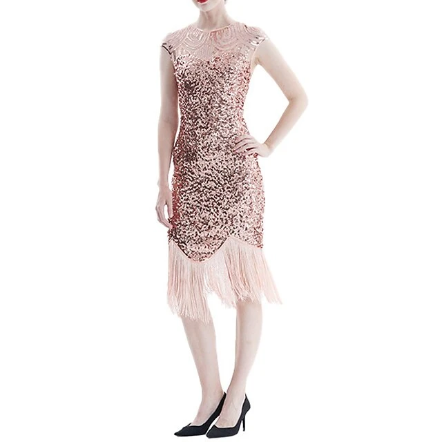Women’s Retro 1920s Fringe Dress Midi Dress Party Halloween Sequins Tassel Fringe Geometric Crewneck Sleeveless Regular Fit Spring Fall 2023 Black Pink S M L XL
