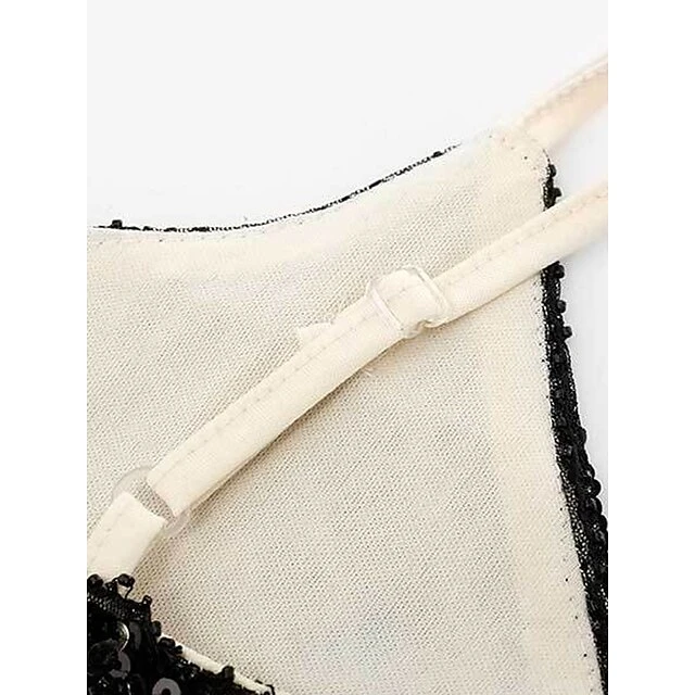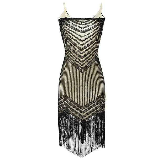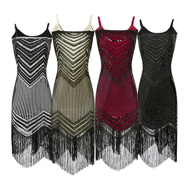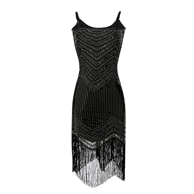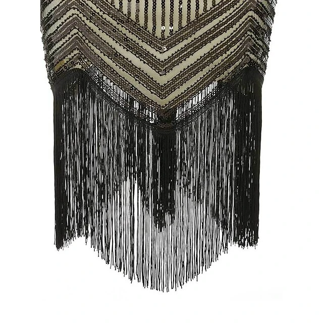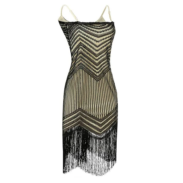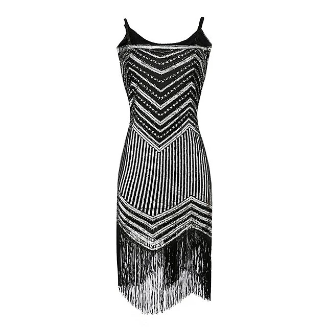 Women’s Retro 1920s Fringe Dress Midi Dress Party Halloween Sequins Tassel Fringe Geometric Spaghetti Strap Sleeveless Regular Fit Spring Fall 2023 Silver Black S M L XL