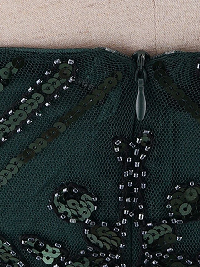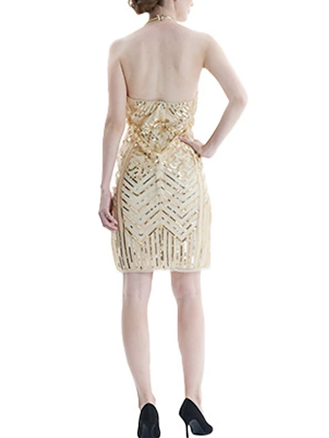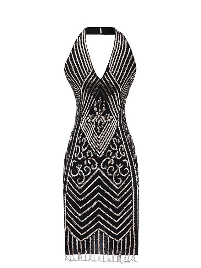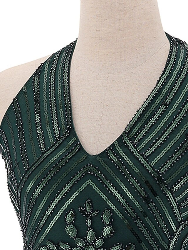 Women’s Retro 1920s Sequin Dress Mini Dress Party Halloween Sequins Patchwork Floral Halter Neck Sleeveless Regular Fit Spring Fall 2023 Black Green S M L XL
