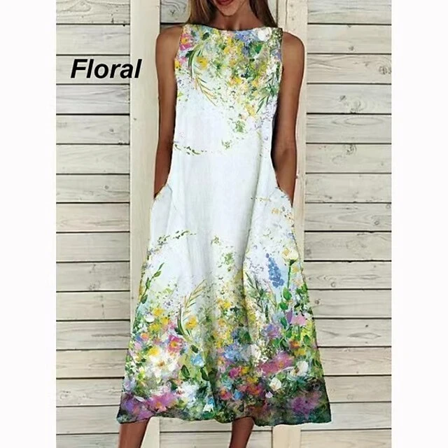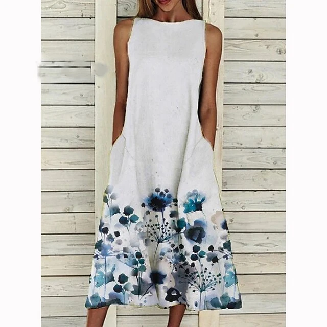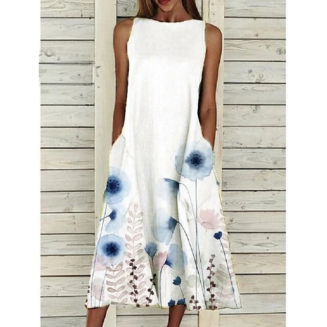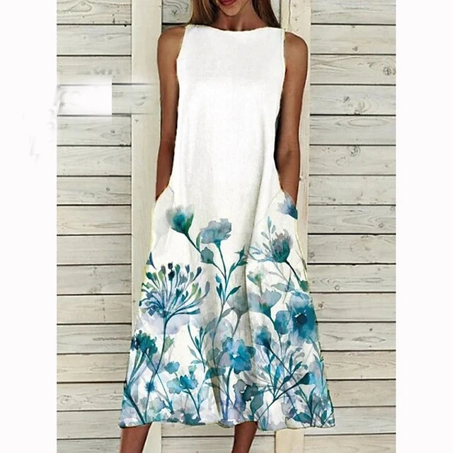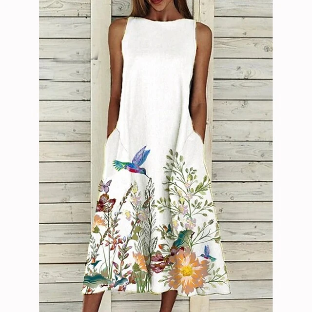 Women’s Shift Dress Floral Dress Midi Dress Purple / Blue Blue Pink Bird Print Sleeveless Floral Print Summer Spring Crew Neck Basic 2023 S M L XL 2XL 3XL