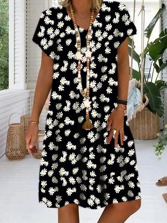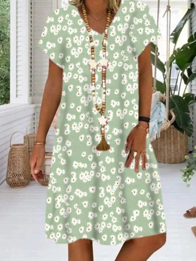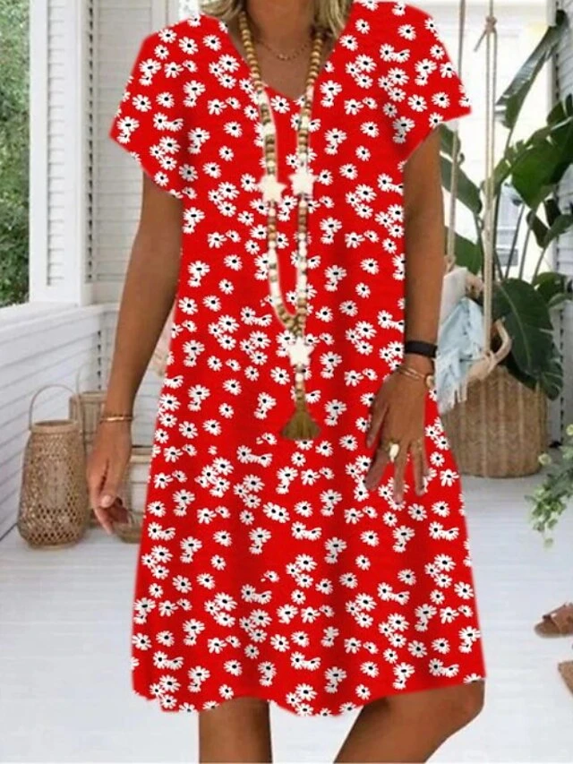 Women’s Shift Dress Knee Length Dress Black Light Green Red Short Sleeve Floral Print Summer Spring V Neck Classic Loose Fit 2023 S M L XL XXL 3XL 4XL 5XL