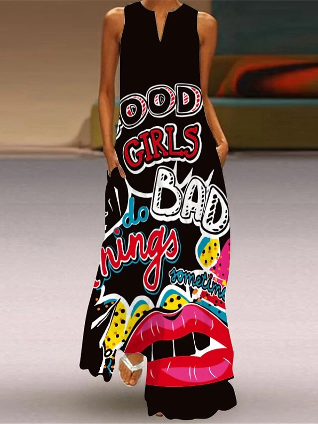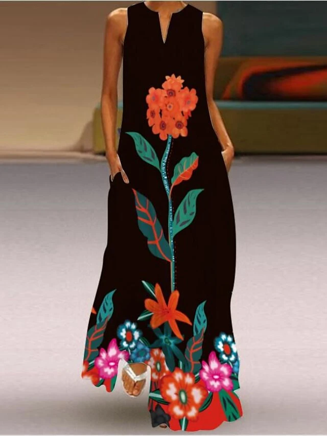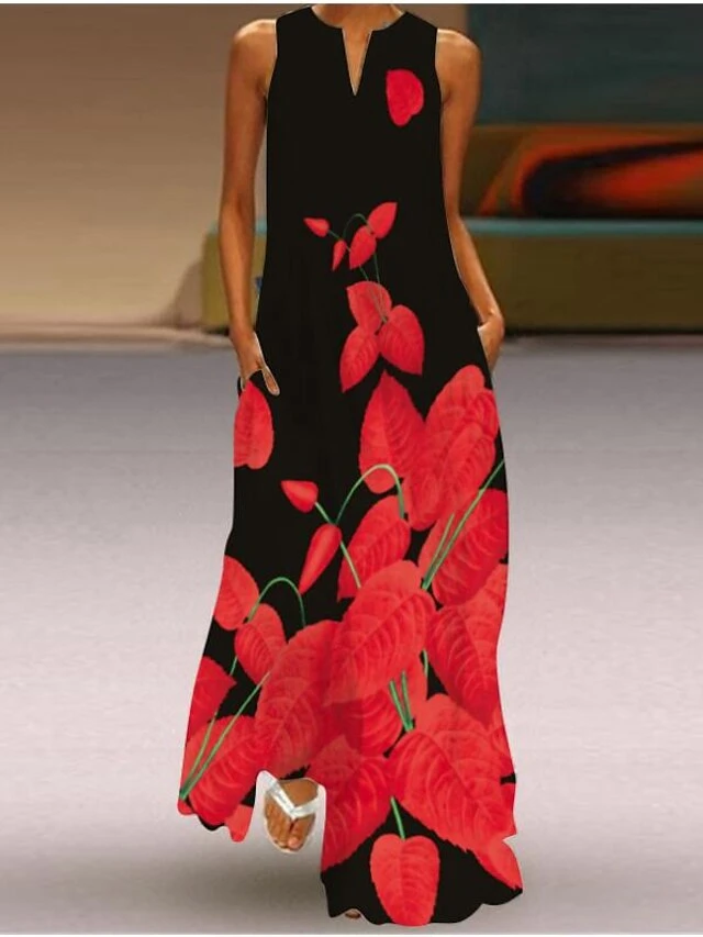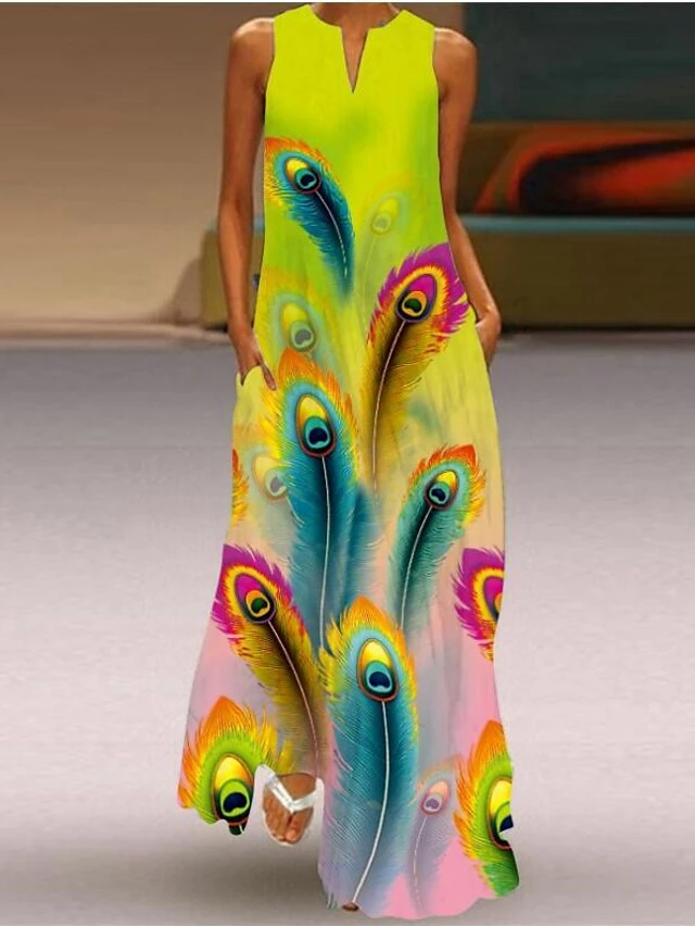 Women’s Shift Dress Maxi Long Dress Sleeveless Animal Print Summer Spring V Neck Classic & Timeless 2023 S M L XL XXL 3XL 4XL 5XL