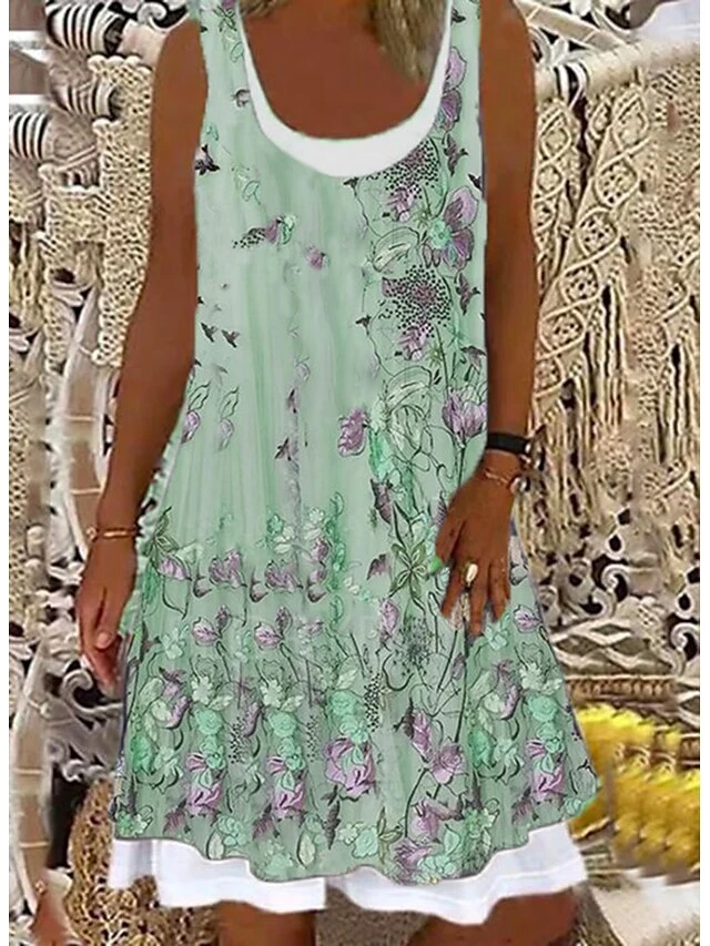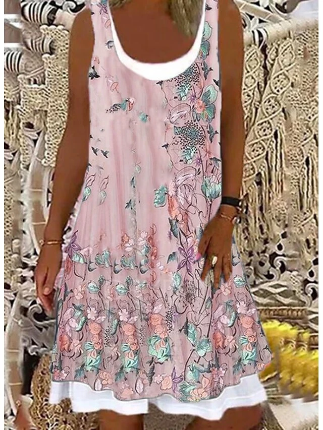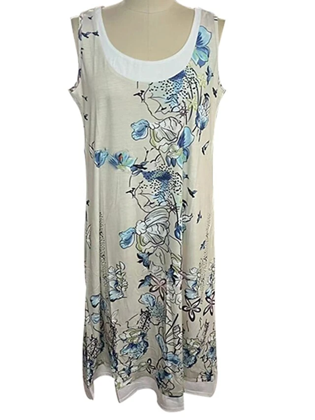 Women’s Shift Dress Midi Dress Light Pink Light Blue Green 1 Sleeveless Floral Print Summer Spring Crew Neck Casual 2023 S M L XL XXL