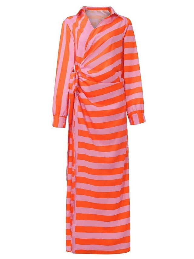 Women’s Shirt Dress Bodycon Wrap Dress Maxi Long Dress Outdoor Daily Polyester Fashion Boho Shirt Collar Ruched Split Long Sleeve Summer Fall Spring 2023 Regular Fit Purple Orange Green