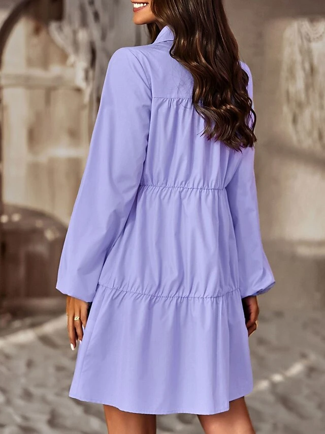 Women’s Shirt Dress Casual Dress Maxi Long Dress Outdoor Daily Date Polyester Fashion Basic Shirt Collar Ruched Button Long Sleeve Spring Fall Winter 2023 Loose Fit Black Blue Purple Pure Color S M L