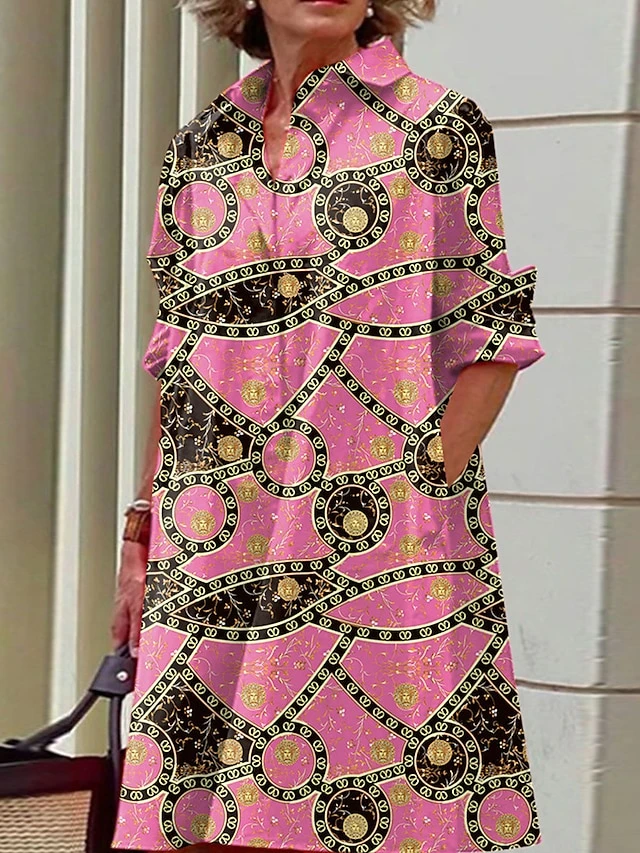 Women’s Shirt Dress Casual Dress Midi Dress Outdoor Office Daily Polyester Fashion Modern Shirt Collar Button Pocket Long Sleeve Fall Winter 2023 Loose Fit Black Pink Wine Color Block Graffiti S M L