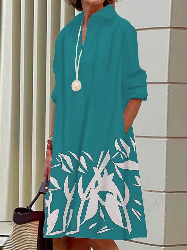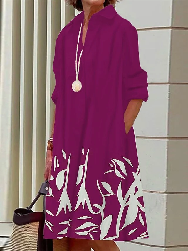 Women’s Shirt Dress Casual Dress Midi Dress Outdoor Office Daily Polyester Fashion Modern Shirt Collar Button Pocket Long Sleeve Summer Spring Fall 2023 Loose Fit Wine Dark Pink Navy Blue Leaf S M L