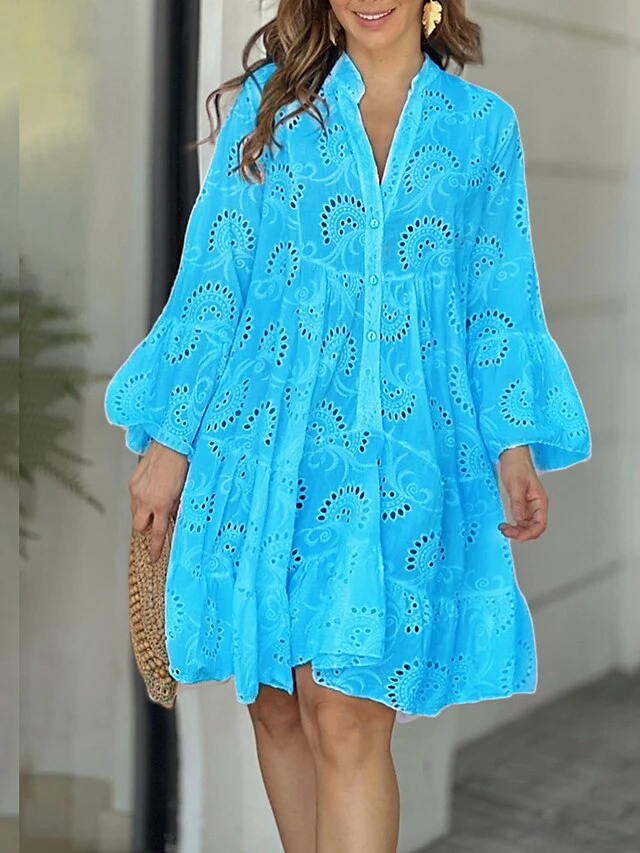 Women’s Shirt Dress Casual Dress Mini Dress Outdoor Daily Date Cotton Basic Classic V Neck Button Long Sleeve Spring Fall Winter 2023 Loose Fit Yellow Pink Red Pure Color S M L XL 2XL