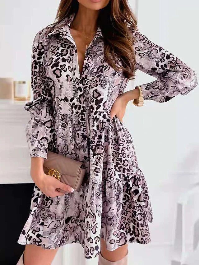 Women’s Shirt Dress Casual Dress Mini Dress Outdoor Daily Date Polyester Fashion Modern Shirt Collar Ruched Print Long Sleeve Spring Fall Winter 2023 Regular Fit Purple Snake Print S M L XL 2XL